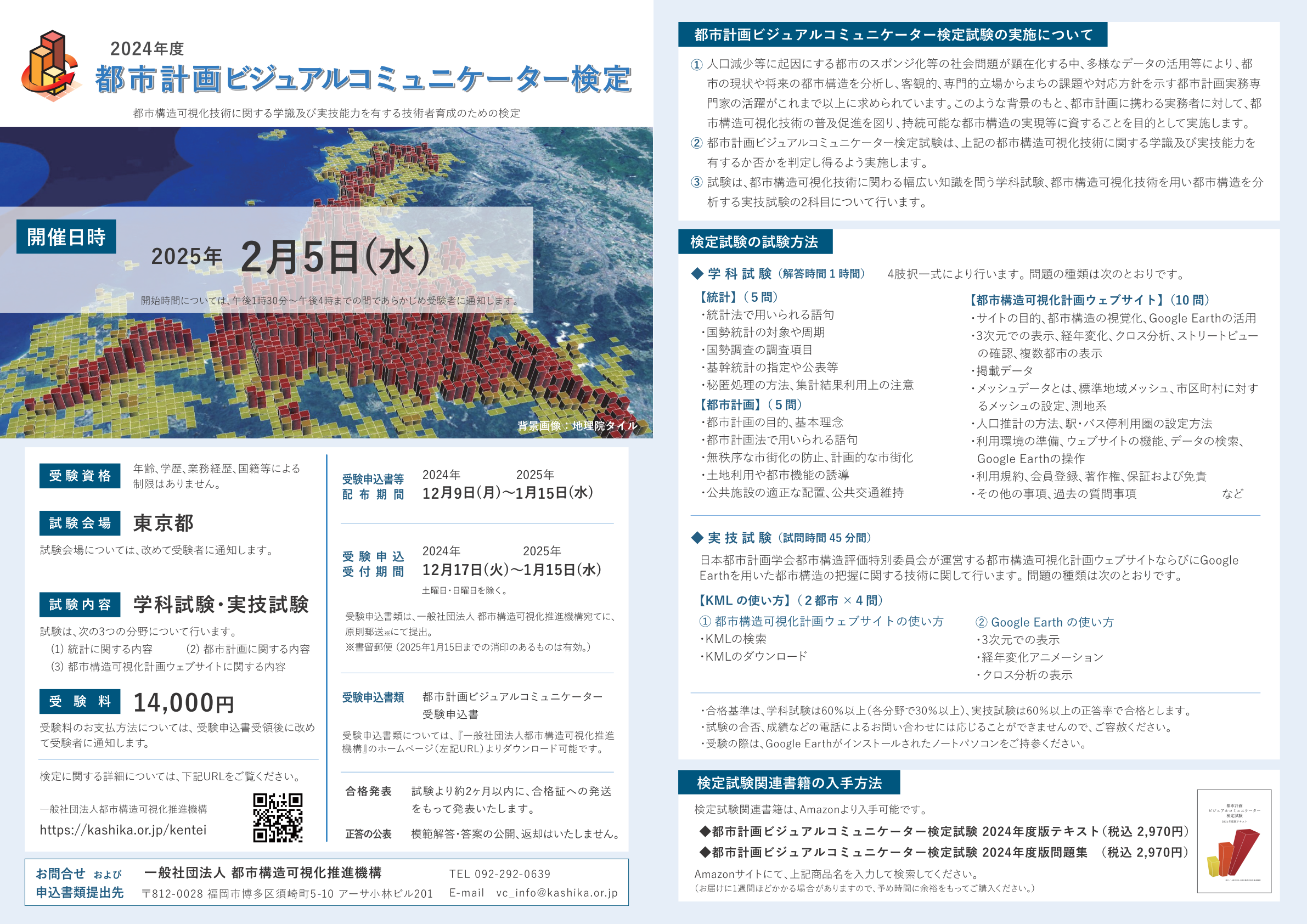 都市計画ビジュアルコミュニケーター検定は、都市構造可視化等を活用した都市計画のコミュニケーション能力についての検定です。